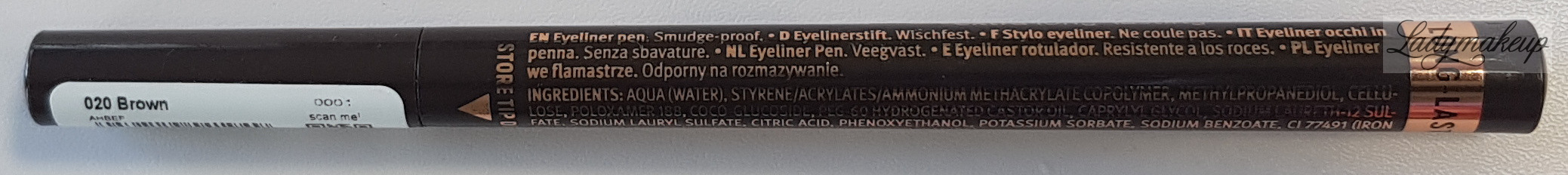 This eyeliner pen ensures perfect eye makeup, not only for everyday use but also for special occasions. It will beautifully define your eyes. It allows you to create lines of varying lengths and thicknesses. It has a pleasant consistency that spreads easily across the eyelid and dries quickly. It also lasts long on the skin.