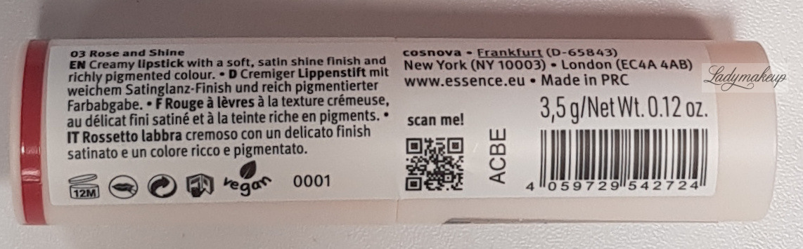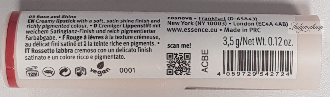 01: CAPRYLIC/CAPRIC TRIGLYCERIDE, HELIANTHUS ANNUUS (SUNFLOWER) SEED WAX, OCTYLDODECANOL, POLYBUTENE, BIS-DIGLYCERYL POLYACYLADIPATE-2, DIISOSTEARYL MALATE, ETHYLHEXYL PALMITATE, ARGANIA SPINOSA KERNEL OIL, SIMMONDSIA CHINENSIS (JOJOBA) SEED OIL, TOCOPHERYL ACETATE, ETHYLHEXYLGLYCERIN, PHENOXYETHANOL, BENZYL ALCOHOL, PARFUM (FRAGRANCE), VANILLIN, CI 15850 (RED 7 LAKE), CI 77491 (IRON OXIDES), CI 77492 (IRON OXIDES), CI 77499 (IRON OXIDES), CI 77891 (TITANIUM DIOXIDE). 02: CAPRYLIC/CAPRIC TRIGLYCERIDE, HELIANTHUS ANNUUS (SUNFLOWER) SEED WAX, OCTYLDODECANOL, POLYBUTENE, BIS-DIGLYCERYL POLYACYLADIPATE-2, DIISOSTEARYL MALATE, ETHYLHEXYL PALMITATE, ARGANIA SPINOSA KERNEL OIL, SIMMONDSIA CHINENSIS (JOJOBA) SEED OIL, TOCOPHERYL ACETATE, ETHYLHEXYLGLYCERIN, PHENOXYETHANOL, BENZYL ALCOHOL, PARFUM (FRAGRANCE), VANILLIN, CI 15850 (RED 6 LAKE), CI 15850 (RED 7 LAKE), CI 77491 (IRON OXIDES), CI 77492 (IRON OXIDES), CI 77499 (IRON OXIDES), CI 77891 (TITANIUM DIOXIDE). 03: CAPRYLIC/CAPRIC TRIGLYCERIDE, HELIANTHUS ANNUUS (SUNFLOWER) SEED WAX, OCTYLDODECANOL, POLYBUTENE, BIS-DIGLYCERYL POLYACYLADIPATE-2, DIISOSTEARYL MALATE, ETHYLHEXYL PALMITATE, ARGANIA SPINOSA KERNEL OIL, SIMMONDSIA CHINENSIS (JOJOBA) SEED OIL, TOCOPHERYL ACETATE, ETHYLHEXYLGLYCERIN, PHENOXYETHANOL, BENZYL ALCOHOL, PARFUM (FRAGRANCE), VANILLIN, CI 15850 (RED 7 LAKE), CI 77491 (IRON OXIDES), CI 77492 (IRON OXIDES), CI 77499 (IRON OXIDES), CI 77891 (TITANIUM DIOXIDE).