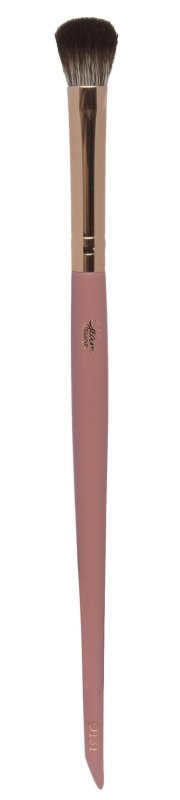 This makeup brush was created specifically for applying and blending eyeshadow on the eyelid and in the crease. The Glam Shop brush is also perfect for precisely powdering the under-eye area and applying highlighter. It features a slightly beveled, flattened head made entirely of synthetic bristles that won't irritate or scratch even the most sensitive skin. The brush is set on a sturdy wooden handle painted in a shade of caramel pink, which beautifully complements the copper ferrule. The Glam Shop brush is contoured to fit comfortably in the hands of both professionals and amateurs.