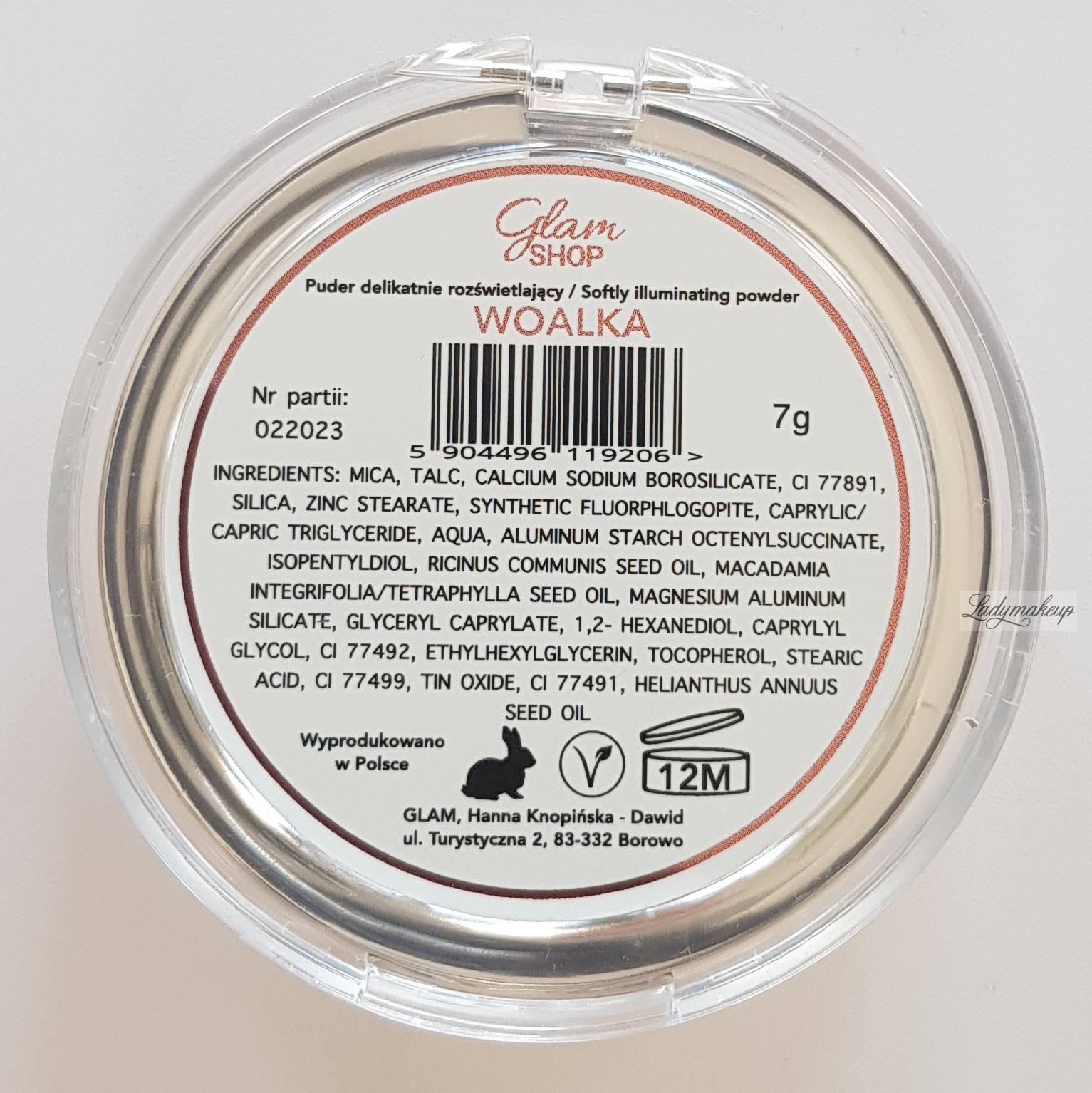is a 100% vegan face powder. Its baked formula is highly pigmented, allowing even a small amount to produce tantalizing results. Glam Shop powder applies evenly to the skin, blends seamlessly with the epidermis, and adapts to any complexion. It leaves a beautiful illuminating effect on the skin and moisturizes the skin well. Depending on your mood, Glam Shop powder can be applied to specific areas of the face or all over. The product is available in a 7g container.