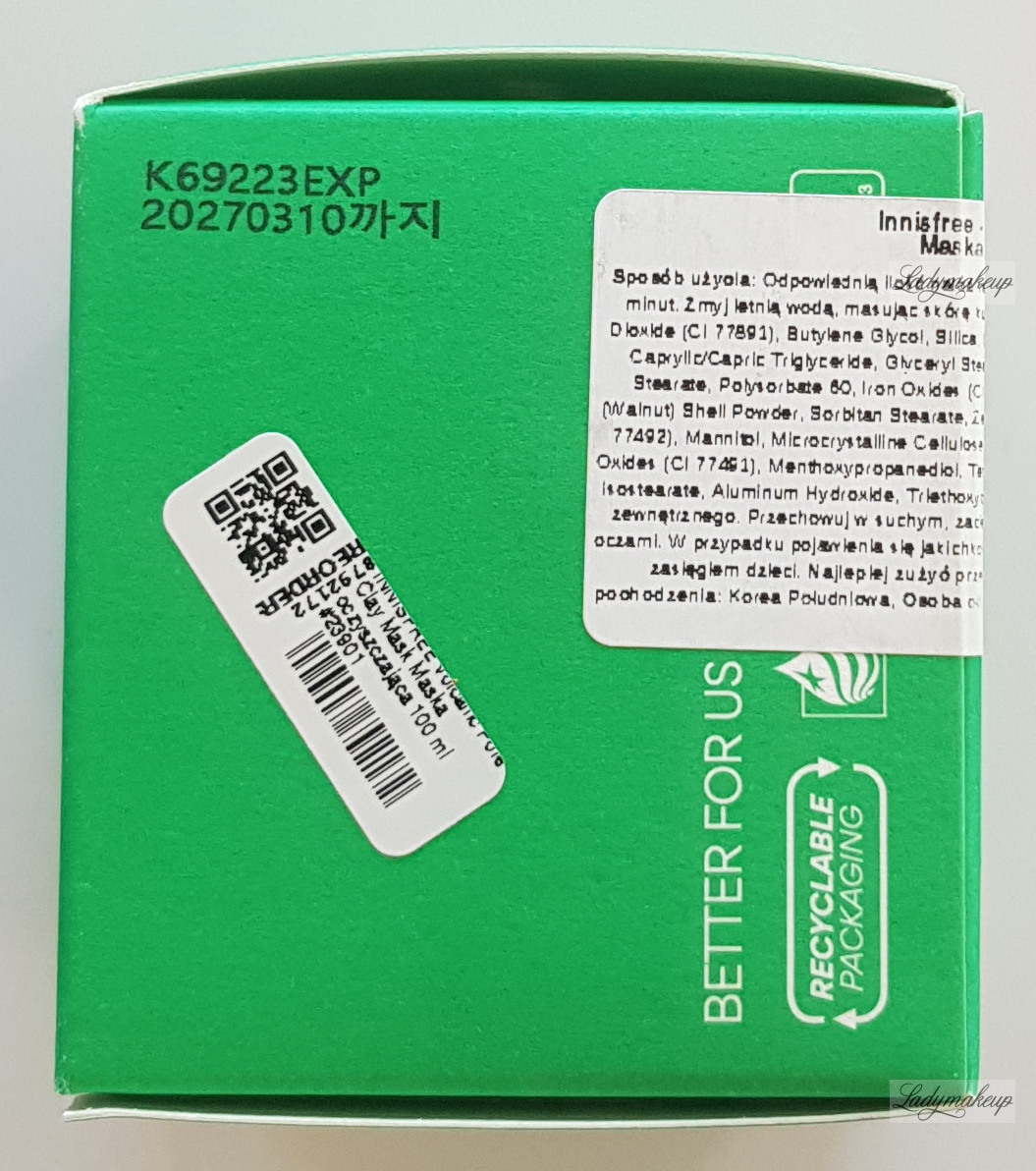 is a face mask specifically designed for oily, combination, and problem skin. Its benefits are based on carefully selected active ingredients, including volcanic ash, clay, walnut shell powder, trehalose, and lactic acid. The Innisfree mask has a pleasantly creamy formula that is easy and pleasant to apply. It effectively cleanses the skin of excess sebum and impurities, refreshes, and provides a tempting cooling effect. It also gently exfoliates dead skin cells, smoothing the skin. Furthermore, the Innisfree mask unclogs clogged pores, helps reduce imperfections, and provides hydration and antioxidant benefits. Available in a 100ml container.