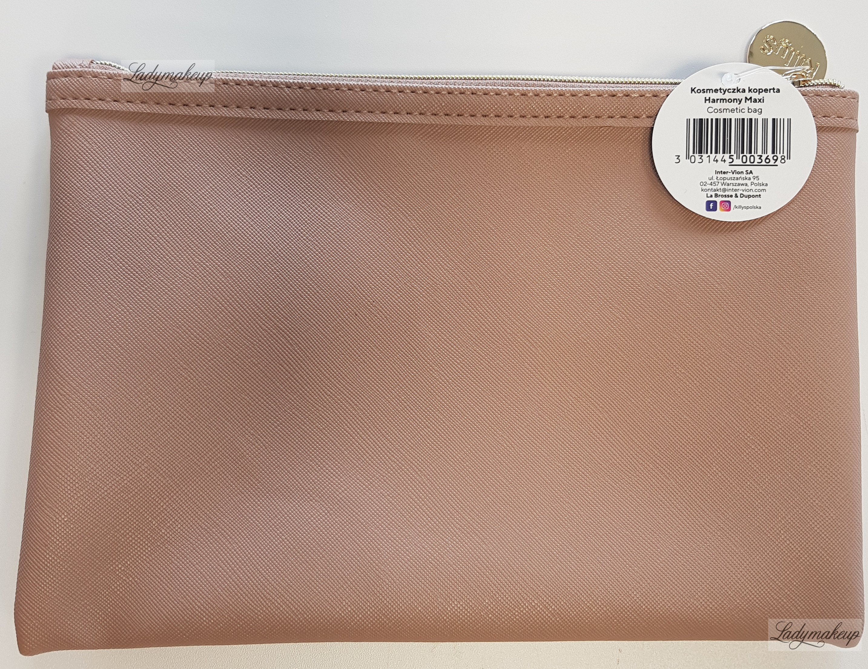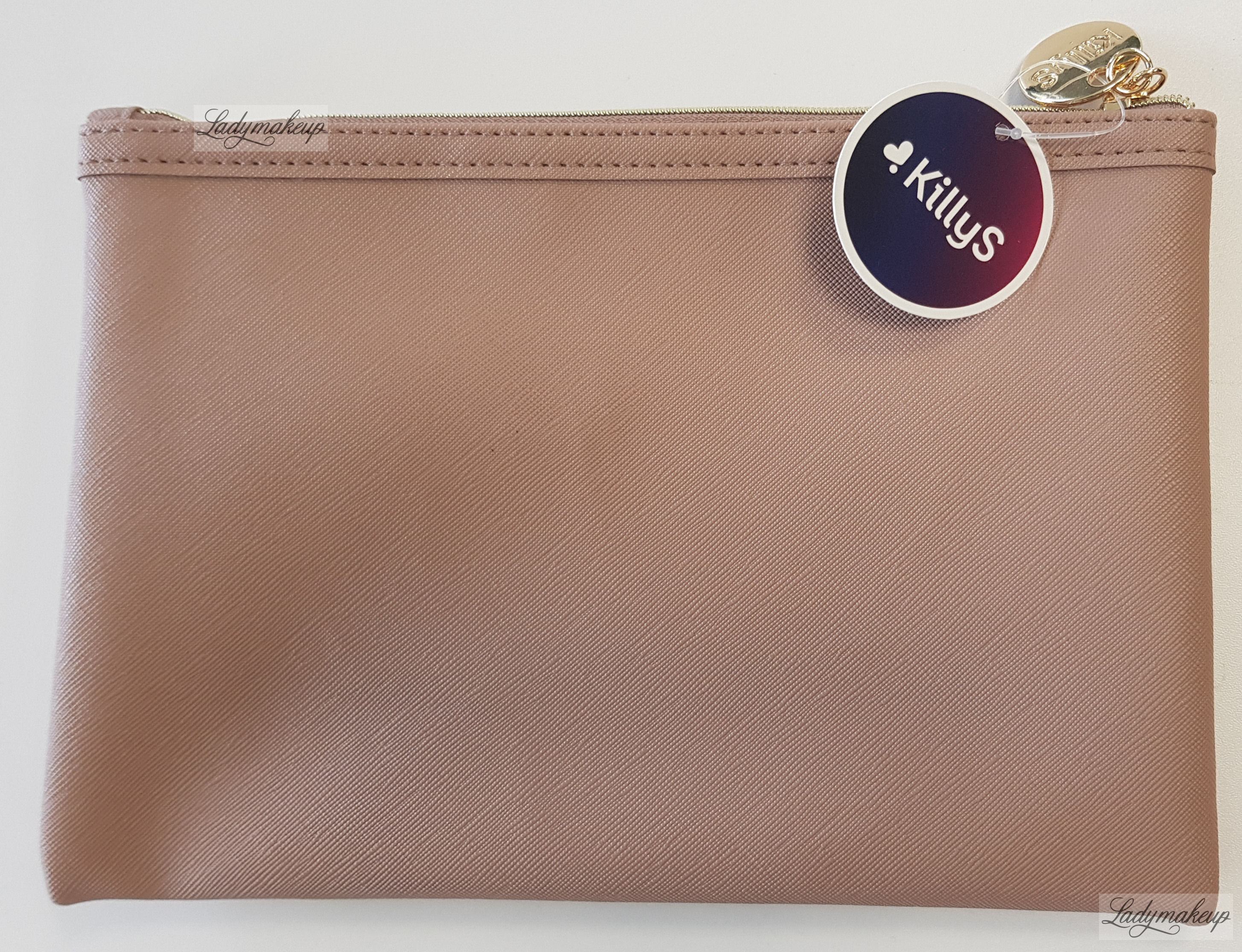 A women's cosmetic bag. Made of a textured material that's easy to clean and somewhat splash-proof, the KillyS Harmony Maxi cosmetic bag is perfect for storing cosmetics and accessories at home. It's also indispensable for travel, as it can hold virtually all the products you'll need for your trip. The KillyS Harmony Maxi cosmetic bag is finished in a tempting dusty pink shade, which beautifully complements the gold zipper with the manufacturer's logo.