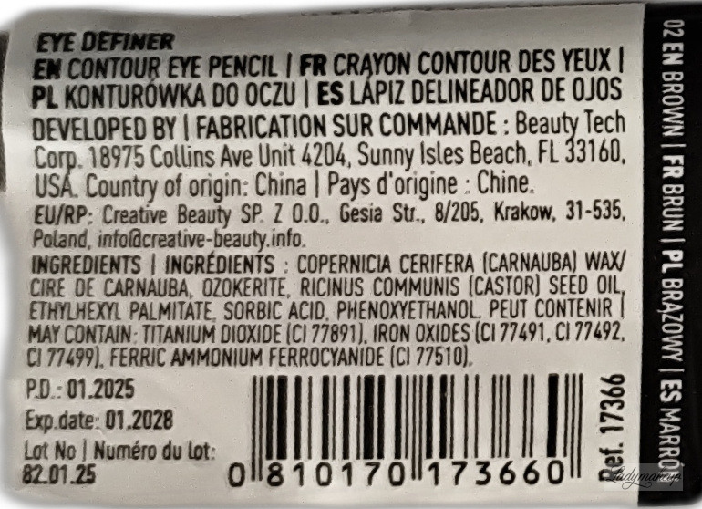 Eyeliner. It has a highly pigmented formula that lasts long on the skin. The Lamel eyeliner quickly and effectively defines and enhances the eyes. It makes eye makeup look spectacular and well-groomed. The precise stylus allows you to draw both thin and precise lines on the eyelids. The Lamel eyeliner is pleasantly soft and creamy, making its application very pleasant and comfortable to wear. It also allows you to create a smoky eye and is suitable for sensitive eyes. It is available in a 1.1g capacity.