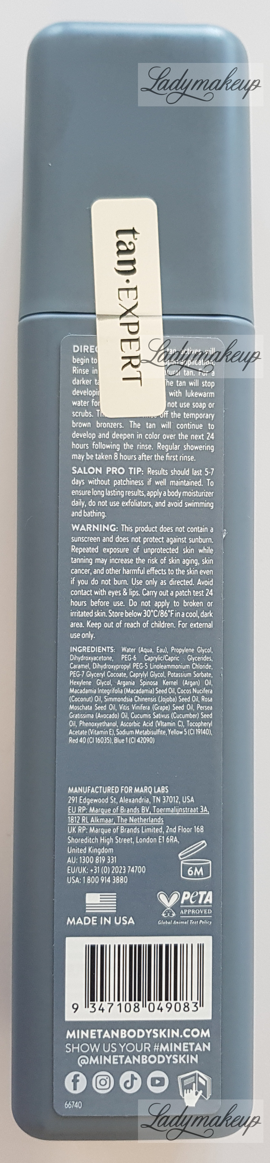After this time, take a short shower (45 seconds) with just water and you're done :) A full bath is possible after 8 hours, and the final tanning effect will be visible after 24 hours.