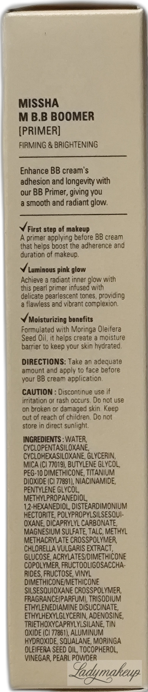A primer for BB cream. Its very light formula doesn't weigh it down and absorbs quickly. It perfectly smooths and moisturizes the skin, preparing it for the application of other makeup products. It contains active ingredients such as moringa oil (moisturizes and protects against external factors), mannan (acts as a natural smoothing and softening balm), squalane (nourishes and prevents water loss from the epidermis), and adenosine and arbutin (brighten, fight wrinkles, and even out skin tone). The cosmetic has a slightly pearly finish that beautifully illuminates the complexion. It is available in a 40 ml bottle.