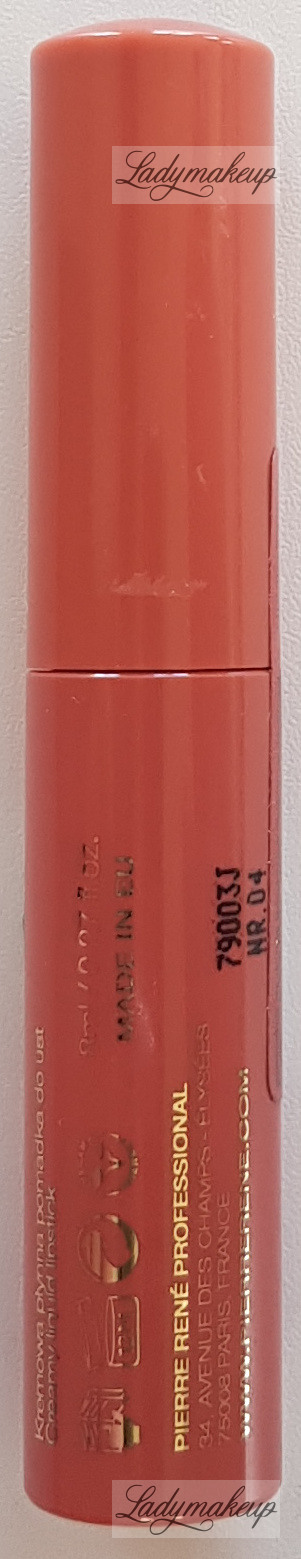 Lipstick. It has a liquid formula that is comfortable to wear. It leaves a tempting, glossy, semi-matte finish. Pierre René lipstick is enriched with specially selected active ingredients, such as vitamin E, which moisturizes, nourishes, and cares for the well-being of the lips. Pierre René lipstick is perfect for both everyday and evening makeup looks. Its long-lasting formula ensures it stays on for hours. The lipstick is equipped with a special applicator for quick and easy application. Pierre René lipstick has a tempting scent. It is available in an 8 ml bottle.