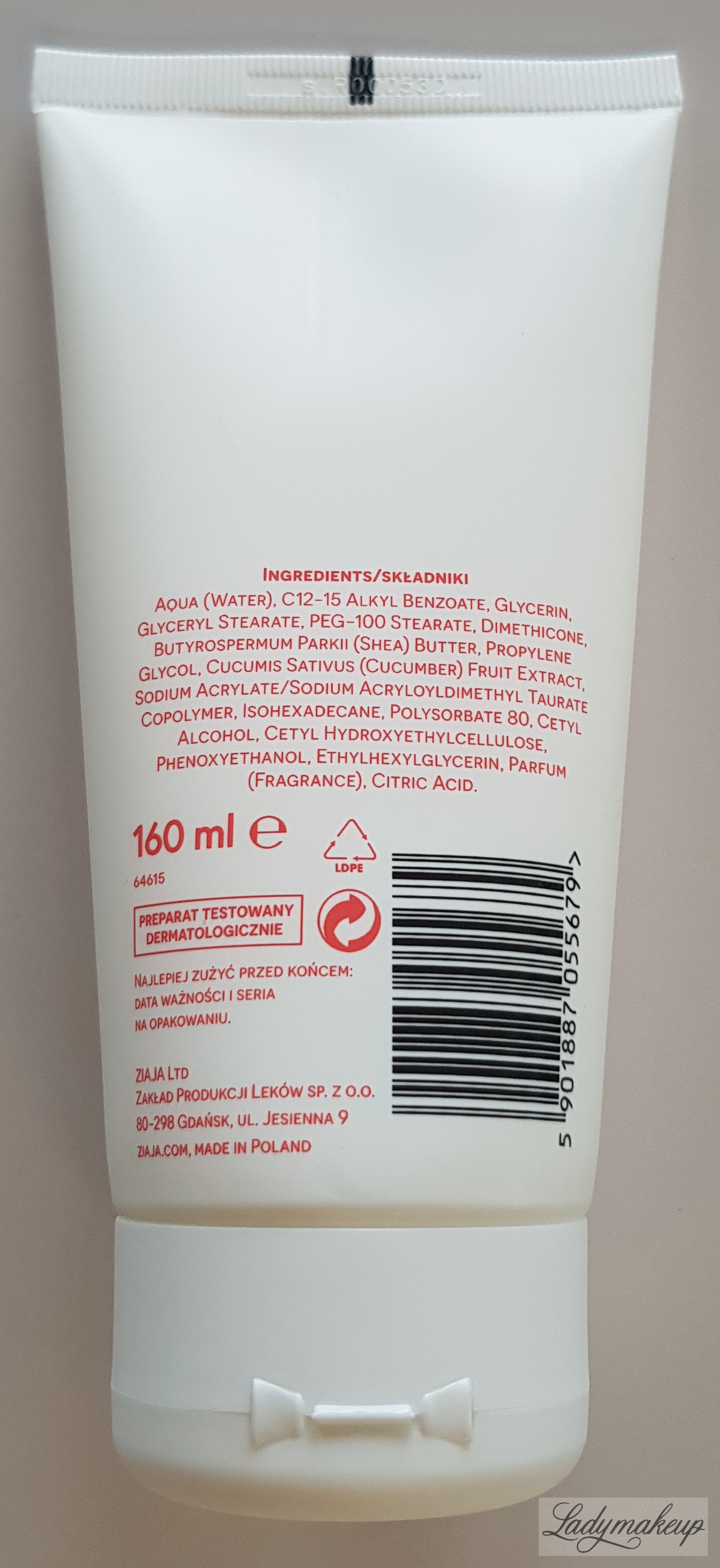 It is 100% vegan and contains 90% ingredients of natural origin. Designed for all skin types, including sensitive skin. Its formula contains active ingredients such as cucumber extract, vegetable glycerin, and shea butter. It has a pleasantly light and easily absorbed formula. Ziaja Balm intensely and long-lastingly moisturizes and smooths the epidermis. It also visibly firms, tones, and tightens the skin all over the body. Ziaja Balm has an incredibly tempting watermelon scent, making it a pleasure to use. The product is packaged in a handy 160 ml tube.